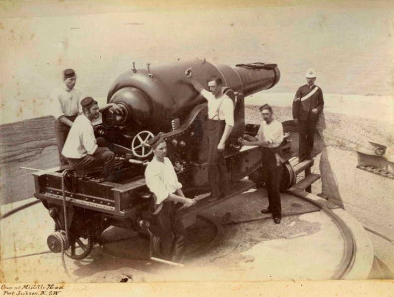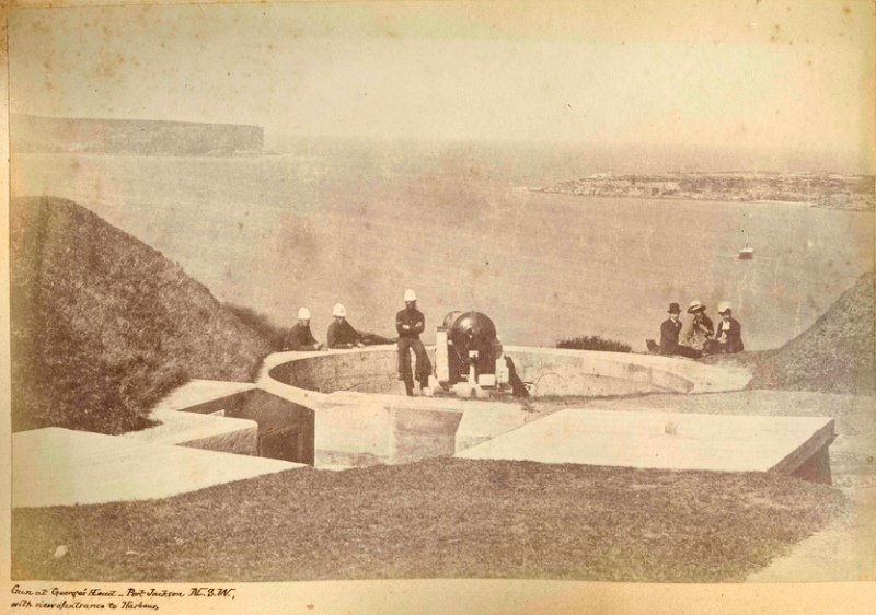 ANMM Collection Gift from the Royal Sydney Yacht Squadron, Image 00013762 and ANMM Collection Gift from the Royal Sydney Yacht Squadron, Image No: 00013762 [15] - first (above) is Gun at George's Head, circa 1880's and second (below) is Gun at Middle Head, also circa 1880's - note the ships in background.