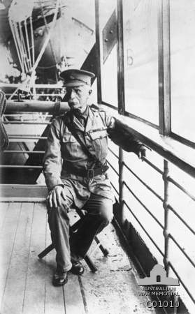 Photo in Text: Informal portrait of Colonel (Col) Thomas Henry Fiaschi DSO of Windsor, NSW, Australian Army Medical Corps, on board the transport RMS Mooltan. Col Fiaschi was Commanding Officer of 3 Australian General Hospital (3AGH); he embarked on 18 May 1915, aged 62, and was discharged on 10 July 1916.