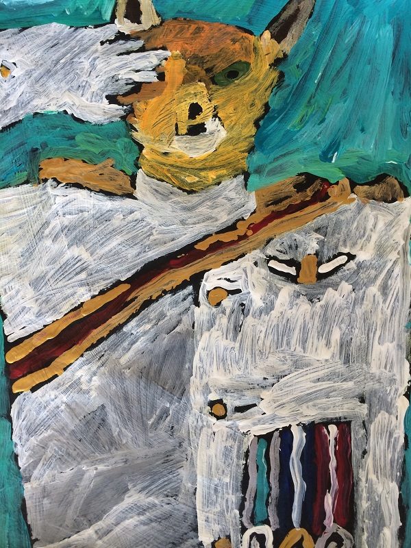 Highly commended acknowledgements have been given to; primary students Amber Knights for Cloud Stories, Riley Brigstocke for The Flying Fox and Orlando Moore for Eyes Closed Portrait; and high school student Tom Kusturin for his untitled work.