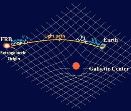 More specifically, Mészáros said the test that he and his coauthors developed involves an analysis of how much space curvature the photons experienced due to massive objects along or near their path through space. He said, "Our test of Einstein's Equivalence Principle using Fast Radio Bursts consists of checking by how much does a parameter -- the gamma parameter -- differ for the two photons with different frequencies."