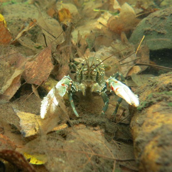 This is a crayfish in an underwater habitat. Credit: Mae Noble