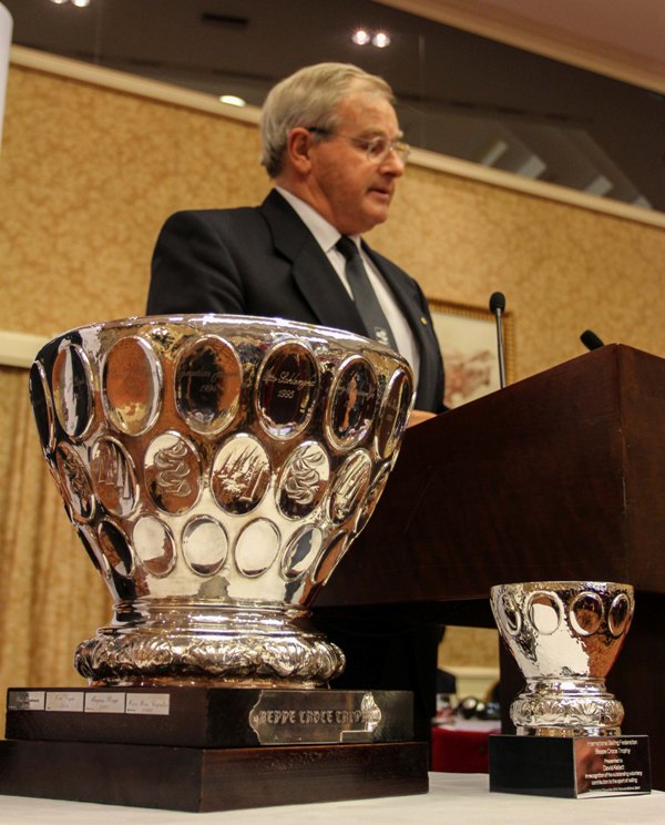 The trophy, which was first awarded in 1988 in memory of Beppe Croce, ISAF President from 1969-1986, was presented to Kellett by ISAF President Carlo Croce at the 2014 ISAF Annual Conference in Palma de Mallorca, Spain.