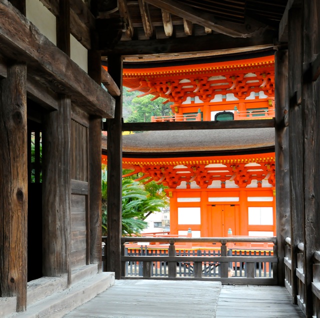 Frames within frames. Goju-no-to pagoda, viewed from Senjo-kaku — the hall of one thousand mats.