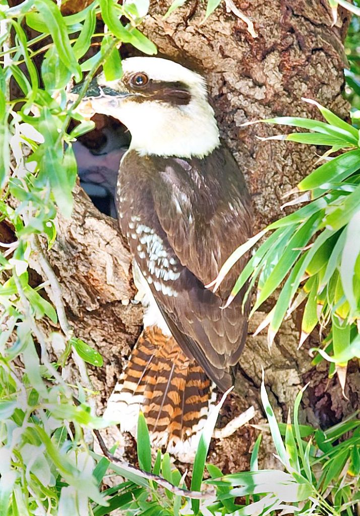The adult kookaburra community, at least five birds, keep a watchful eye on the nest, ready to chase away predators.