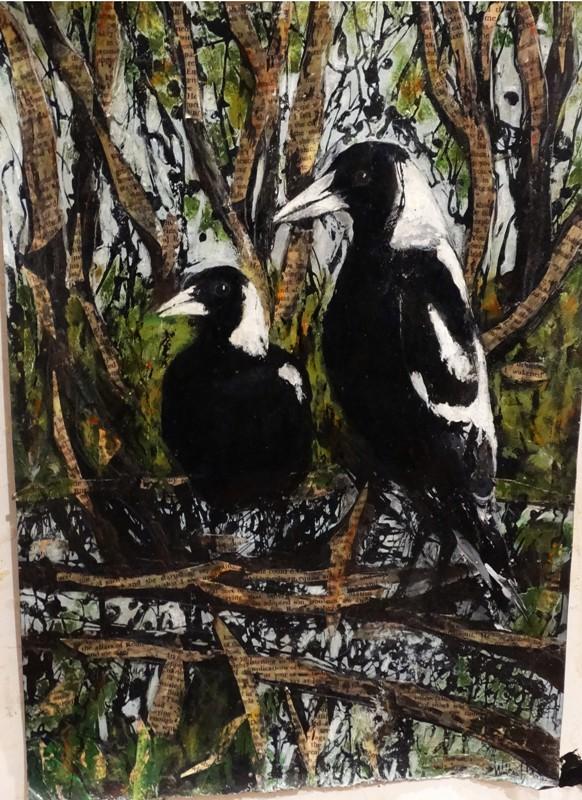 I’m still working on this painting of the lady with the camel. I’ve also started doing more of Pittwater – this one for example, of the magpies in the mangroves – that’s really me - and taking in the feathers and the birds, so I think after I do my next exhibition I’d like to get into doing more local stuff.