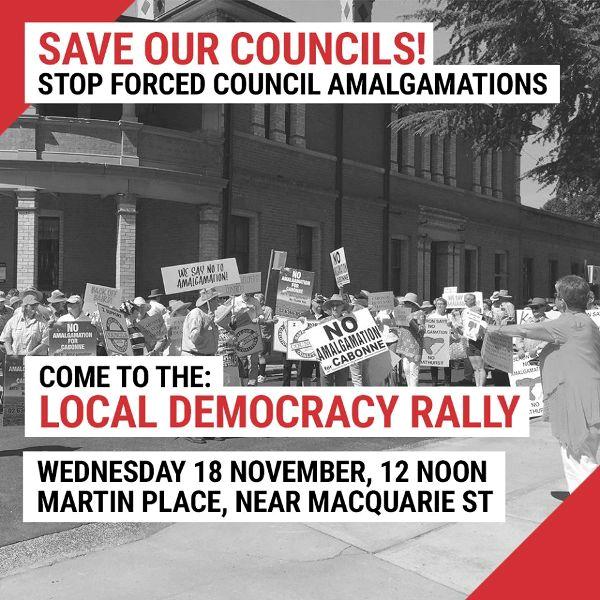 Mosman Council has maintained its staunchly independent stance, resolving on 10 November not to provide the State Government with any merger options as had been requested and backing a Rally for Local Democracy which will be held in Martin Place (Macquarie Street end) at noon on Wednesday 18 November.