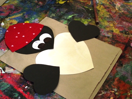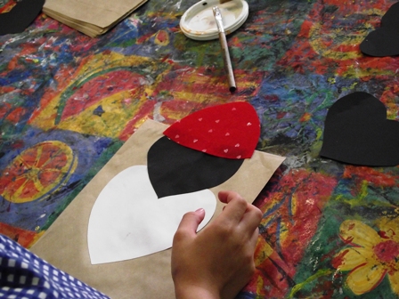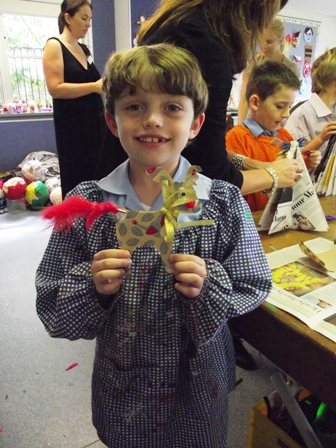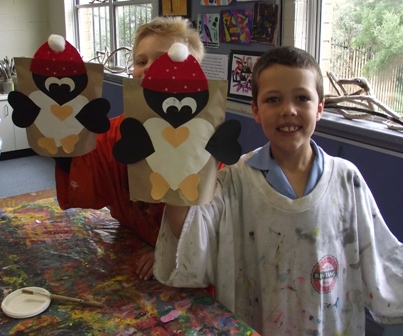 The samples made wereFelt Angels, which the small boys then ‘flew’ around the room, some with accompanying noises. Penguin Hand Puppets, Reindeers which incorporated a cut-out stencil that was then pasted to Christmas paper before having a ‘feather’ tail attached and eyes for face. A Jigsaw Reindeer which