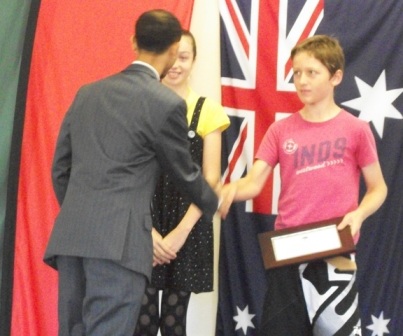 Tamara Sloper Harding, chairlady of PFOS, with the Consul, thanked the Maria Regina students and staff for their initiating this friendship by presenting a framed Certificate of Appreciation that reads ‘ To acknowledge the integral role of the students and staff in the establishment of the friendship between the Pittwater community and that of Soibada, Timor Leste, on the 10th Anniversary of the Independence of Timor-Leste.’