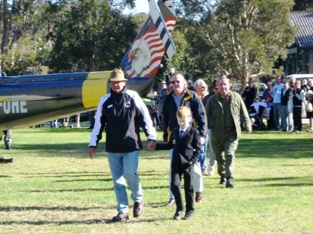 Above: Vietnam Veterans brought into Avalon Tattoo Day, 2011, on Eric Soar's Iriquois Huey Helicopter.