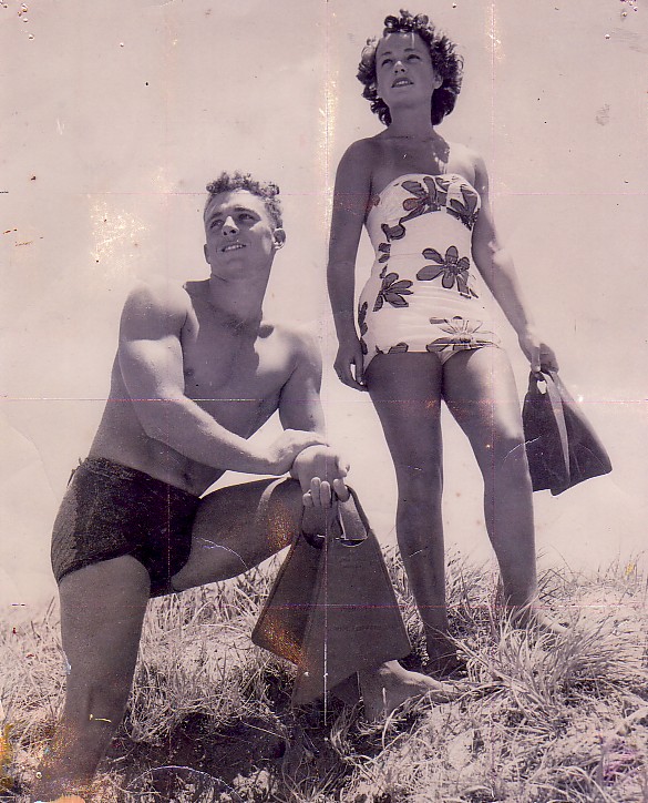 Max and Norma were used as models when swim flippers were first introduced into Australia, a photo which was to feature on the cover of then Pix Magazine. “That was my California print bathing suit.” Norma said when asked about this photo, “He was 19 years old then and I was 17… just look at those lovely arms of his..”