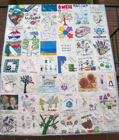 Wall Hanging Project: At the beginning of the year all MVPS families were invited to participate in the school’s Centenary Wall Hanging Project and over 160 squares were returned, each interpreting the theme ‘school and family’. A few helpers and teacher Deb O’Shea are now working to bring together the final piece so it’s ready for dedication at the Special School Assembly on Friday 27 April, 2012.