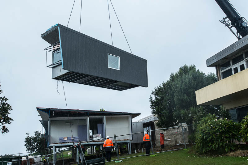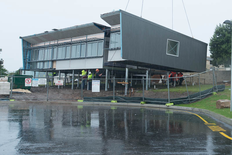 The Prefab units pictured here came from Melbourne by truck overnight. Drivers stopped at Pheasants Nest then came with a police escort to Mona Vale. The Units were built in 4 weeks and then will be assembled in 2 weeks making building completed in just 6 weeks.