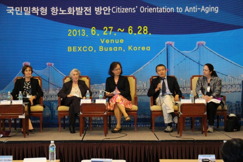 Panel presenting on Ethical Issues of Aging and Anti-Aging at the 8th Busan Active Aging Conference in Asia Pacific; Janferie Bryce-Chapman, New Zealand; Nan Bosler, Australia; Leng Leng Thang, Professor, National University of Singapore; Adachi