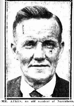 Picture at right from: Mr Atkin – an old resident of Narrabeen No title. (1925, February 1). Sunday Times (Sydney, NSW : 1895 - 1930), p. 7 Section: Social and Magazine Section. Retrieved from http://nla.gov.au/nla.news-article128164071