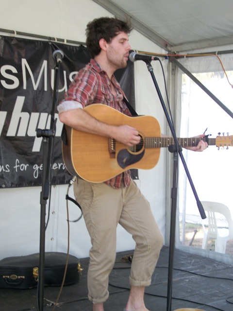 The Northern Beaches Music Festival ran last weekend from Friday night through to Sunday night. With over 100 acts, 50% of whom were Northern Beaches musicians, it was a delight and feast for all the senses. Run as a non-profit showcase for folk, blues, country, bluegrass, a Capella and purely Australian melodies, the Festival had a great second year thanks to Warringah Council and four music venues along our Northern Beaches; The Shack, Fairlight Folk, Humph Hall and The Manly Fig. A team of volunteers, ably directed by a tireless Kathleen Swadling, ran for almost twenty four hours for three days straight. Some musicians, such as Tully of the Dingle Brothers, seemed to pull double and triple duty, leaping from the stage to mix for other bands. This gent was who mixed for the finalists of this year’s Young Bloods when they got to perform on the Main Stage in the Marquee after the winner’s announcement.