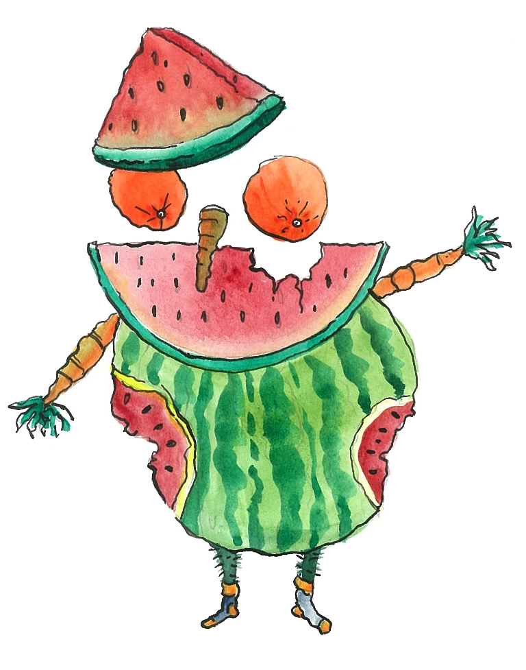 I don’t know if I did make them look delicious!! I think it all comes down to the way kids eat. The Watermelon Man for example, is missing chunks from his side because that is just the way kids like to eat, you know it runs down their face and it’s all stained and squashed. And they should be able to play with it; you know, feel the skin of a pineapple and squash watermelon through their fingers!