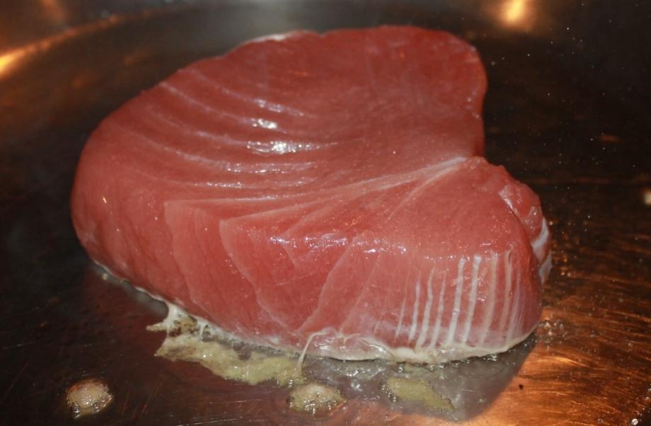 Heat a frying pan over medium-high heat. Add tuna and cook for 2-3 minutes each side for medium or until cooked to your liking. Set aside for 5 minutes to rest. Flake the tuna into large pieces or leave as one piece to place on your salad base.
