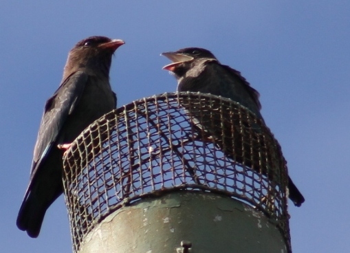Pittwater is currently flush with families of birds which return here each Summer to breed young and feed them before returning to wintering grounds. Most of these, although thriving because of our creeks, coastal rock platforms and wetlands, are creatures that extensively belong to the salt air. These two Dollarbirds, a parent and young, were spotted at Careel Bay where the fledgling was heard calling for more food quite distinctly. Most birdwatchers know you often hear a bird prior to being able to see it and the insistent call of the young one pictured here was heard and led to seeing them. They are still there at present if you wish to have a look for yourself.