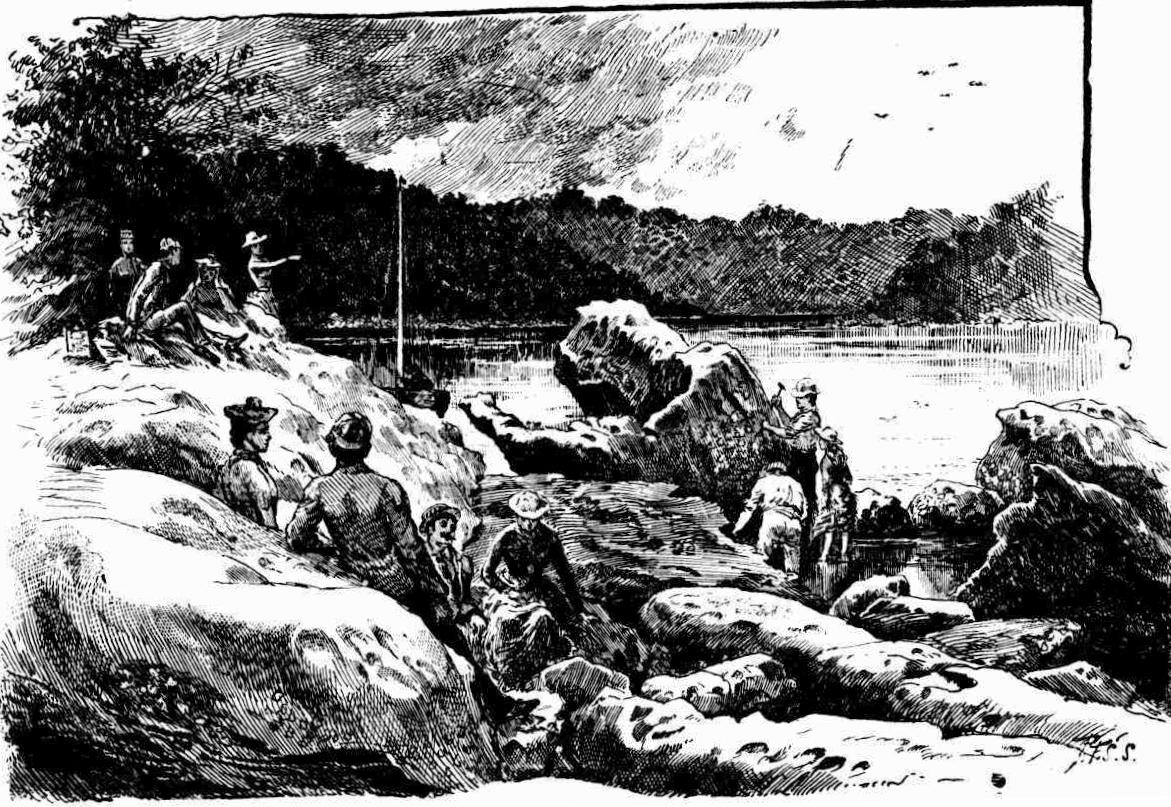 I knew that without his telling me so, though for the moment I was panic stricken, and didn't know what course to adopt. Tom advised me to go back to the water and stand in it with the coat on, gammoning to gather oysters, until she was gone; but even as he was speaking I seized my half dry clothes, jumped up from the fire, and dashed off to find the shelter of some friendly rock. Luckily this was not wanting, and long before Nat and his companion came up, I had resumed my ordinary costume though not my ordinary ease of manner, for the clothes were still damp, and would feel cold whenever they touched me.