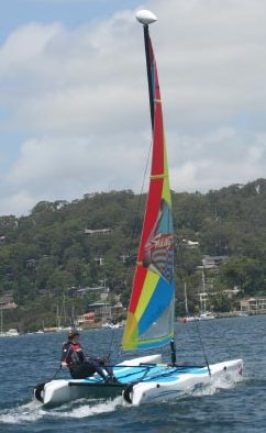 Hobie 16s are a fun boat to sail in close match racing at club level. Being a 'one design' class means all the boats are pretty much the same, so it comes down to skipper and crew on the day. Some cynics reckon it's like racing HQ Holdens, but that is part of the attraction: they have their foibles, but every crew has to deal with them, and if you get it wrong, you swim! But that's all part of the fun!