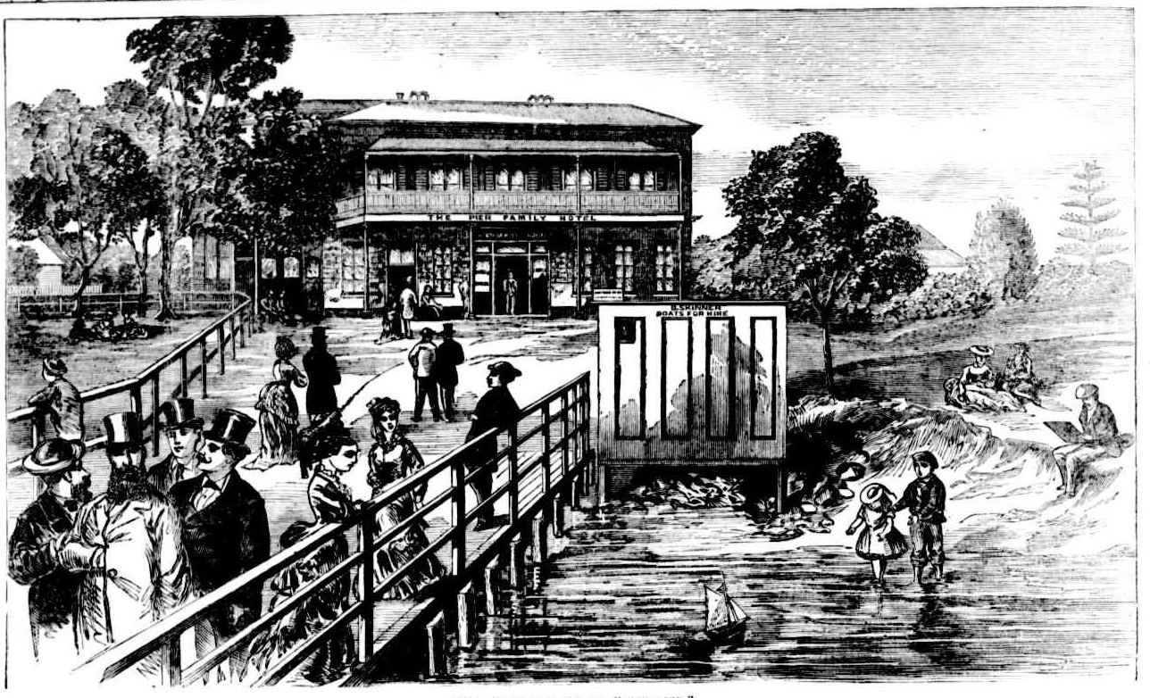 Charles Lawrence took over the Pier Hotel in November 1865. A few insights into the Pier Hotel show it was being completed in December 1855 and was advertised by the Morts in that same month and quickly became a place for many to gather. Successive lessors were Phillip Cohen and James Grocott: