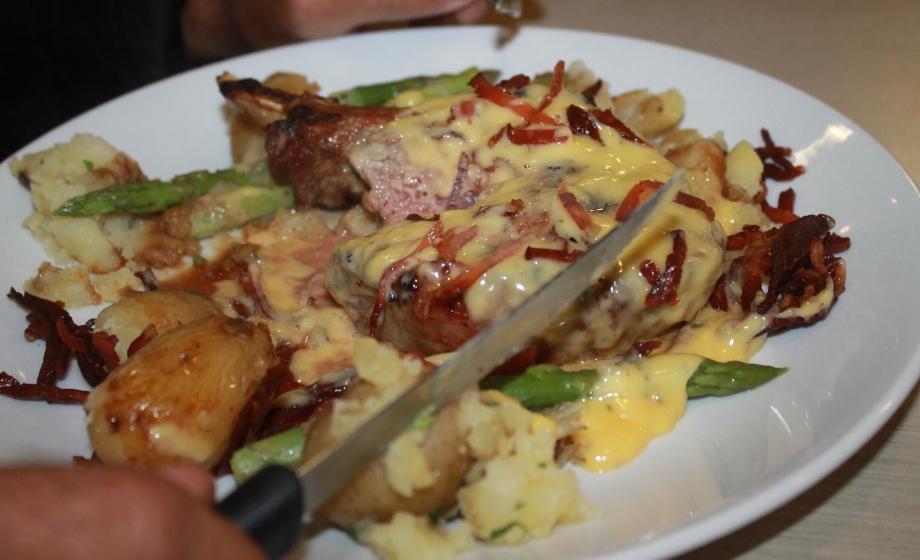 Rib-Eye Steak: 300g served with baby chats, fresh asparagus and bacon with fresh made Bernaise sauce