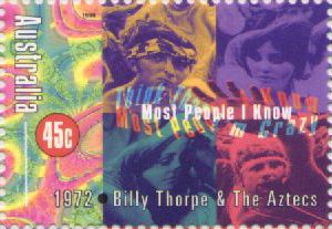 Above: Billy Thorpe & The Aztecs' Sunbury triumph commemorated in Australia Post's 1998 Australian Rock stamp series