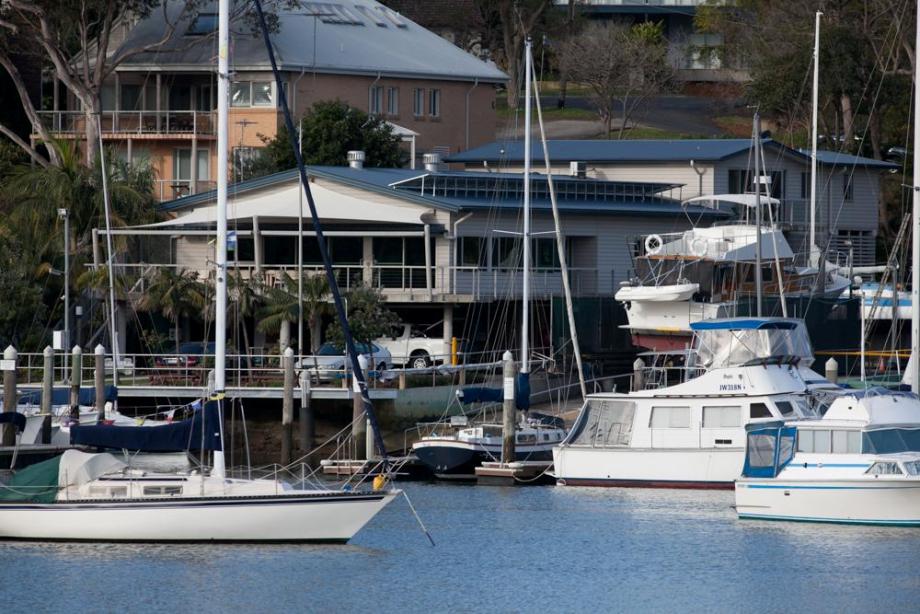 Club view showing the PAC clubhouse and marina and the Winnererremy Bay on the lower part of the picture.