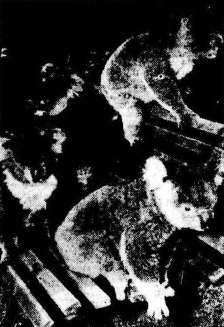 TARONGA PARK ZOO president, Sir Edward Hallstrom, is foster mother to five baby parakeets, found in bush country near Mona Vale, NSW. Although still almost featherless, the 10-day-old birds are thriving in a suitcase under Sir Edward's desk. He feeds them five times a day with a medicinal syringe. QUINS ARE A HANDFUL. (1954, June 26). Barrier Miner(Broken Hill, NSW : 1888 - 1954), p. 11. Retrieved from http://nla.gov.au/nla.news-article49956348