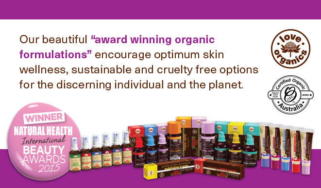 Recently one of the series of products created by ABFE, The Love System, a range of Certified Organic Skincare and Bodycare formulations containing Australian Bush Flower Essences, won the acclaimed The Natural Health Beauty Awards 2015 in the UK.
