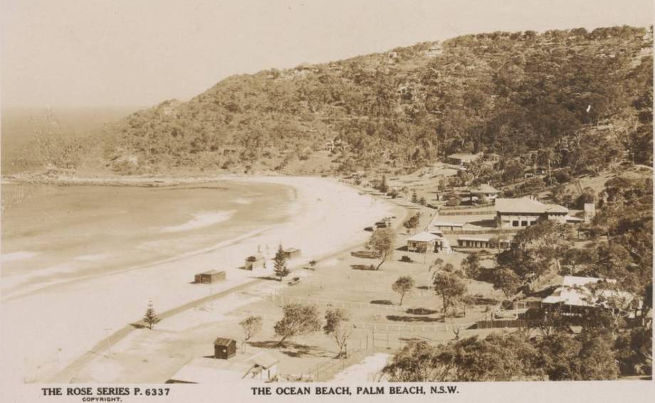 PALM BEACH, NEW SOUTH WALES. - - Among the most beautiful bathing beaches in Australia, Palm Beachis situated on a peninsula fifteen to twenty miles north of Sydney. Close by, the waters of the beautiful Hawkesbury River flow into Broken Bay. On one side of the peninsula, which is but a few hundred yards across, is the surf of the Pacific Ocean, and on the other are the calm waters of the historic Pittwater, the scene of many aquatic carnivals. At one time there were many palms in the locality, but few remain, and these are jealously preserved. photo by H. CAZNEAUX PALM BEACH, NEW SOUTH WALES. (1934, October 1). The Australasian (Melbourne, Vic. : 1864 - 1946), p. 19. Retrieved from http://nla.gov.au/nla.news-article145241972 - this is Wilshire Park Palm Beach, with the Corticate of Title registered in 1925