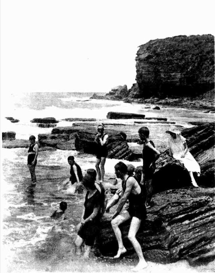 Avalon is near Palm Beach, that exquisitely beautiful spot beyond Newport, which in recent years has become a fashionable holiday and week-end resort. These young people an enjoying themselves at what is known as the Avalon bathing hole, a natural rocky bath, which has been improved by the residents in the locality. Current (1923, January 17). Sydney Mail (NSW : 1912 - 1938), p. 7. Retrieved from http://nla.gov.au/nla.news-article159024708