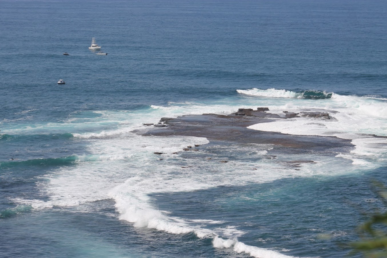 There is evidence that a pool prior to the one we are familiar with, completed in 1935 in its present position, one that was in use prior to that 'rockbath' and prior to that finished in 1926 at the north end of the beach, towards Bilgola (see below). At the south end a pool we went looking for and may have spotted from the clifftops at 'Crossing waves' (Crossways), overlooking the Newport Reef rockshelf at the southern end of the beach - as always, confirmation from those with further information to add into this page would be appreciated. The images and articles that sent us looking for the first Newport pool: