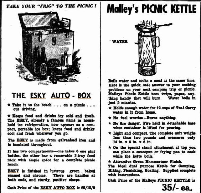 Esky Auto Box and Picnic Kettle: QLD: Advertising. (1954, August 20). Morning Bulletin(Rockhampton, Qld. : 1878 - 1954), p. 7. Retrieved from http://nla.gov.au/nla.news-article57336359