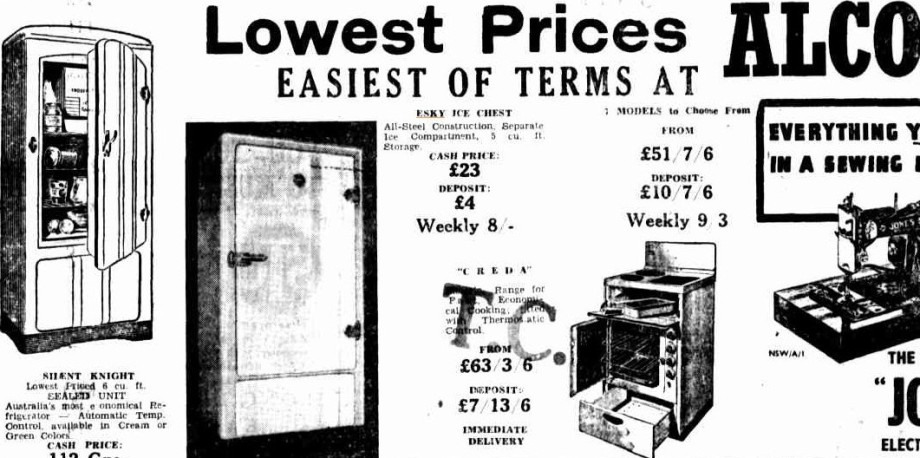 Air-Conditioned All Steel - Cream Large Ice Refrigerators 'Esky' and 'Austral-Ice' Priced at £22/17/6 Advertising. (1952, January 25).Barrier Daily Truth (Broken Hill, NSW : 1908; 1941 - 1954), p. 3. Retrieved from http://nla.gov.au/nla.news-article141206756