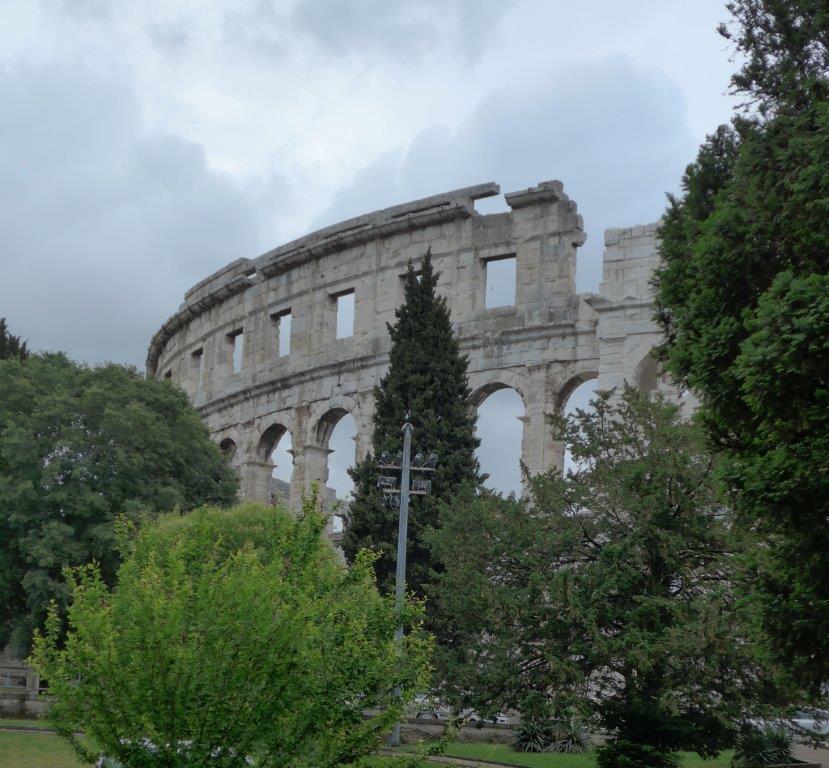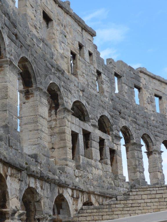 The Romans occupied Istria in 177 BCE and Pula became a significant Roman port with a population, at one time, of about 30,000. The Romans fortified the city with a wall with ten gates some of which can be seen to this day, notably the 1st Century CE Twin Gates, theTriumphal Gate of the Sergii and the Gate of Hercules. In the period from 27 BCE to 68 CE they built the Pula Arena one of the six largest surviving Roman amphitheatres in the world and arguably the best preserved. They provided the town with a water supply and built a sewerage system.