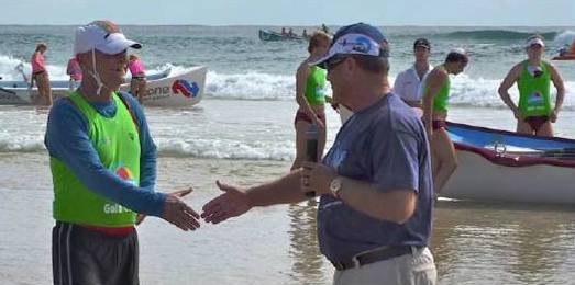 Rick Millar is presented with Life Membership of the ASRL at the Australian Titles at Kirra Beach
