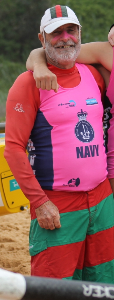 Rick with 'The Pink Bits' - Warriewood Surf Boat - 2013