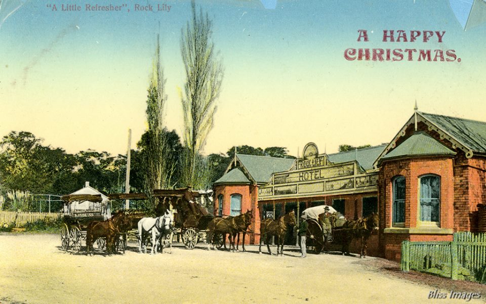 The amount of people wanting to travel to the Rock Lily, coupled with an apparent competition with Mr. Black of 'who's kind of the road', who presented a petition in his own favour, signed by those who may have experienced Leon's rambunctiousness driving style, inspired Leon to do it for himself and run his own coaches. Extensive stables attached to the property, later leased to others (occupied by Messrs. Cooper and Co., Coach Proprietors in 1907 advertisement), were his next big venture. Some of these 'news' items give details which show the Rock Lily building was growing, as a structure as much as a business: