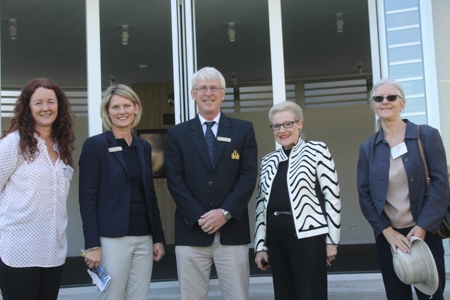 Deputy Mayor of Pittwater, Cr. Kylie Ferguson, General Manager of RPAYC Suzanne Davies, Commodore Ian Audseley, the Honourable Bronwyn Bishop, Cr. Sue Young of Pittwater Council outside the new Jack Gale Centre