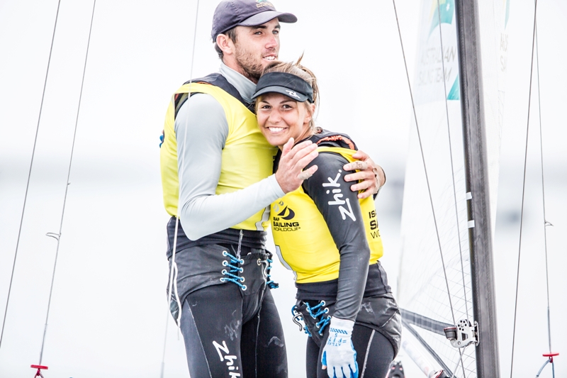 Australian Sailing Team’s Jason Waterhouse (NSW) and Lisa Darmanin (NSW) took home the Gold Medal in the Nacra 17 and added another win for Australia in this new mixed-gender multi-hull boat class, which will premier on the Rio 2016 Olympic program. It is the second World Cup win for cousins Waterhouse and Darmanin, after a gold medal at the ISAF Sailing World Cup in Melbourne in December and a bronze medal at the ISAF Sailing World Championships in September last year.