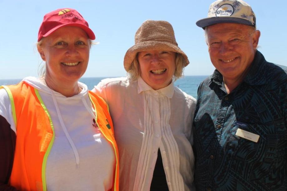President of Newport SLSC Sandy Menzies with Mayor of Pittwater, Cr. Jacqueline Townsend and Cr. Ian White at 2015 Pool to Peak Swim at Newport.