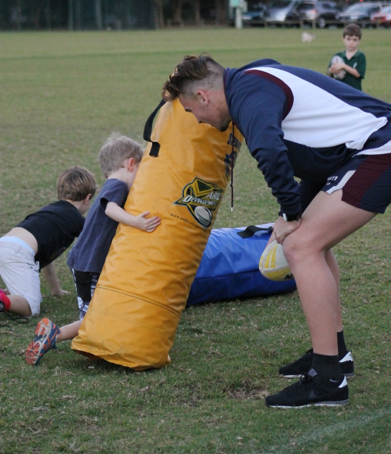 Clinton Gutherson and Jorge Tuafua joined in the Training Session of the Avalon Bulldogs JRFLC on Tuesday evening, 27th of May. Coaches Brian Friend, Jack Friend, Matthew Edding, Peter Johnson, Blake Cousemacker, Jett Hobbs, Aaron Groom and Gaven Sheehan helped run drills with the two Manly Sea Eagles players.
