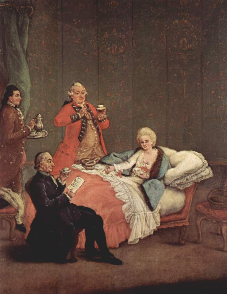 Chocolate soon became a fashionable drink of the nobility after the discovery of the Americas. The morning chocolate by Pietro Longhi; Venice, 1775–1780