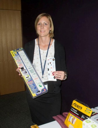 Left: Pittwater Council's Joanne Tulau demonstrates the contents of the Power Saver kit.
