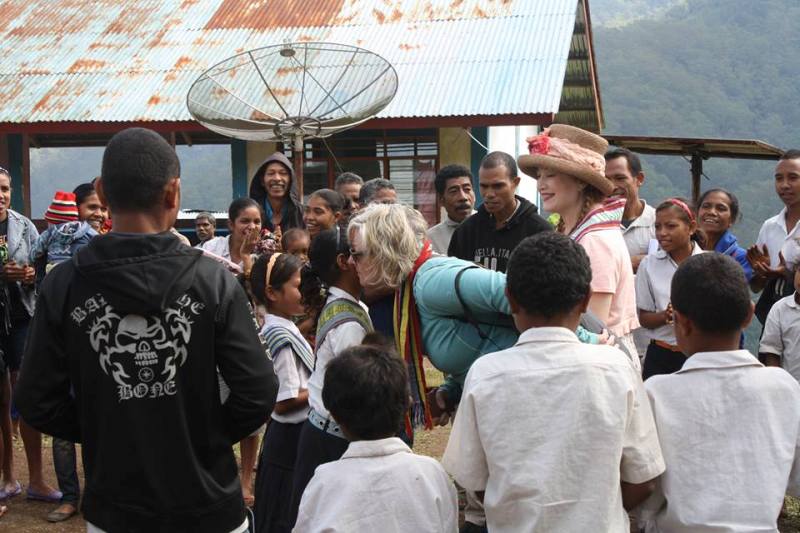Our team was welcomed with a traditional dance from the children and a meranda (morning tea) consisting of cassava and taro. The sweet black locally grown coffee was served with heaps of sugar and warmed us in the cool breeze. Many villagers were wrapped in blankets donated by our community on earlier visits and babies were wearing the tiny jumpers knitted on Wednesdays at the “Soibada Knitters Group”. The Principal of the small school in Tasi Fatin was delighted to receive letters from Sacred Heart Catholic Primary School in Mona Vale. This new friendship relationship between the two schools is of great importance to the community of Tasi Fatin.