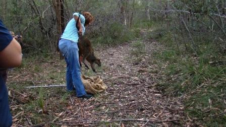 Sonja happened to be working the ‘After-hours Hotline’ at Sydney Wildlife when she received the call. Getting there quickly was imperative, so she and Tyson were on the scene just after midnight, equipped with lots of towels, an extra-large carrier/enclosure and plenty of courage.