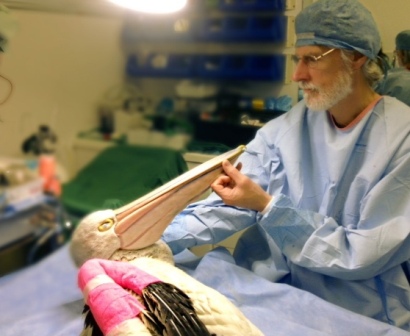 Whipper was whisked up to Dr Howard Ralph - a veterinary surgeon now specialising in wildlife. Whipper was put under General Anaesthetic straight away. With part of his bone exposed, Dr Ralph knew the wound would never heal. The bone was cut back, the dead cells curetted and a dressing applied.