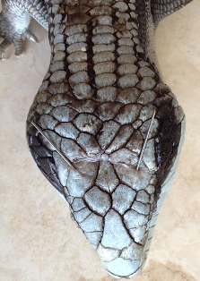 In this picture, I had just assisted him in shedding his skin. It was very tricky for him because of all the lacerations to his body. We sat out on the balcony together and he just lay quietly in my lap while I picked off the shed, scale by scale. It took 2 hours. I chatted, he listened. I sang, he listened. I chatted some more, he listened. He’s a very good listener :)