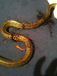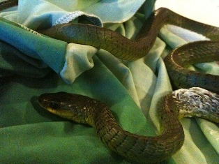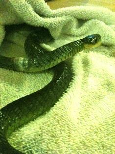 The problem with Green Tree Snakes is that they seldom eat when placed in captivity. Given that George was with us for almost 12 weeks, we had to ensure that he ate. We force-fed him through a crop-needle.